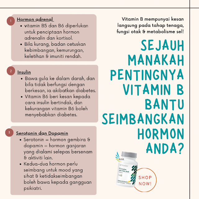 - Penghasilan Tenaga dan Metabolisme. Vitamin B diperlukan untuk menukar makanan kepada tenaga, bantu kurangkan rasa letih dan tingkatkan tahap tenaga secara keseluruhan. Ini secara tidak langsung boleh kurangkan tekanan yang berpunca daripada keletihan atau rasa terlalu terbeban.